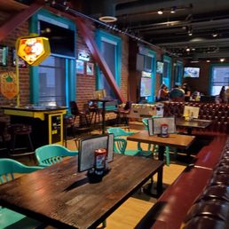 Good place to hang with a large group and play some games. Also came on a Friday night, with some people hanging out to play pool, arcade games and just enjoy a beer. Large list of beers on tap. Service was nice and quick too. Prices were decent, and they also had a "spin the wheel" deal for $7. Fun for the thrills! It is a few flights of stairs to enter. Recommend taking the elevator if you're tired or a little tipsy coming down! But fit the golden gate theme well!